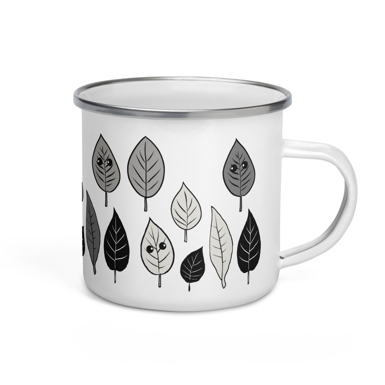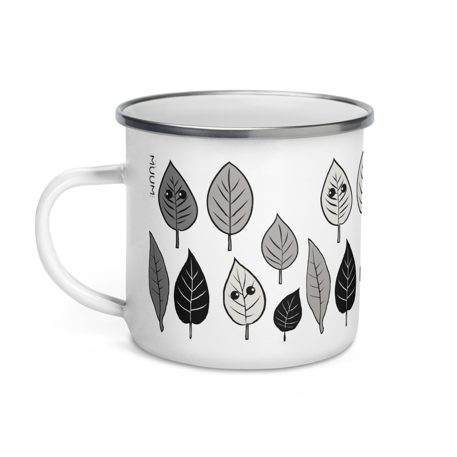 Adorable Enamel Mug – Whimsical Leaves (Black)